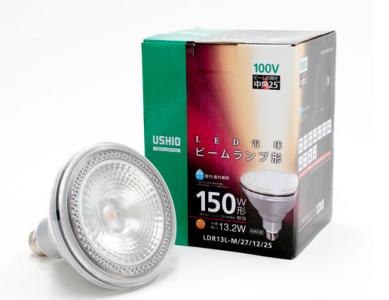 低消費電力化で参入ウシオライティング株式会社は、ビームランプ形白熱電球150W形と同等の光度を備えたLED電球、「LEDIU(レデュー)LED電球ビームランプ形」を発売した。